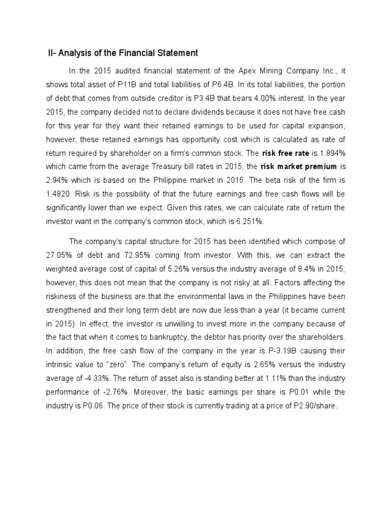 II- Analysis of the Financial Statement