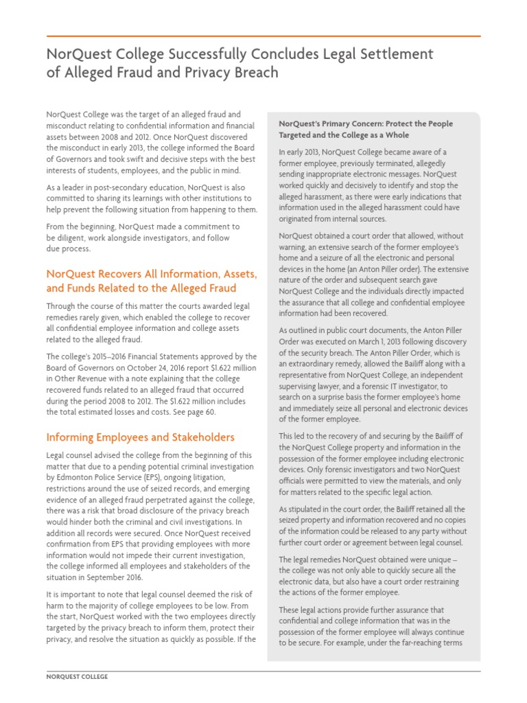 NorQuest College Successfully Concludes Legal Settlement of Alleged Fraud and Privacy Breach