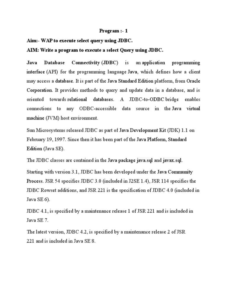 Aim:- WAP to execute select query using JDBC.