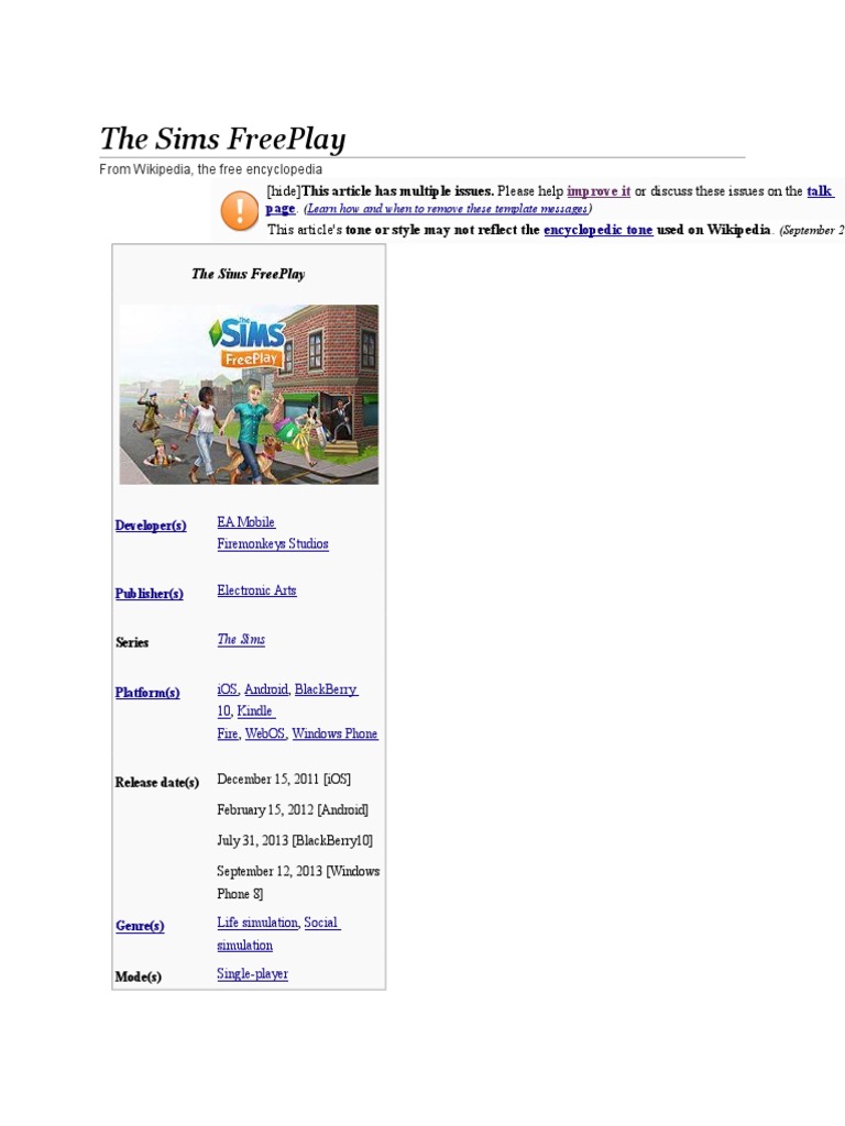 10. Jump up^ "The Sims FreePlay - The Pre-Teen Update for iOS". EA