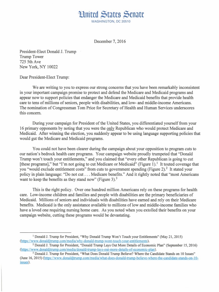 2016 We are writing to you to express our strong concerns that you have been remarkably inconsistent in your important campaign promise to protect and defend the Medicare and Medicaid programs and appear now to support policies that endanger the Medicare and Medicaid benefits that provide health care to tens