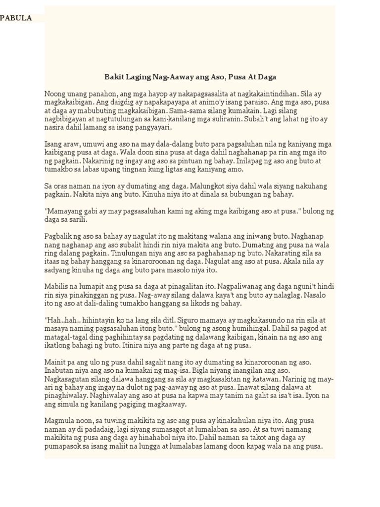 Noong unang panahon, ang mga hayop ay nakapagsasalita at nagkakaintindihan. Sila ay