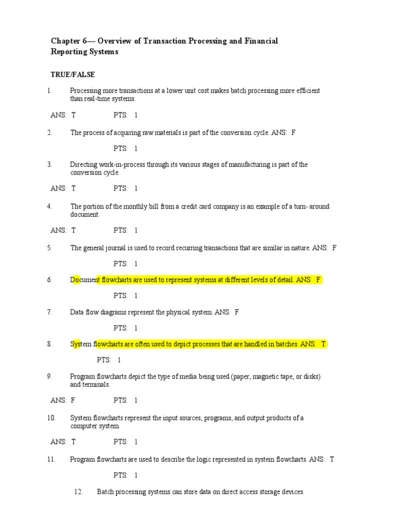 System flowcharts are often used to depict processes that are handled in batches. ANS: T