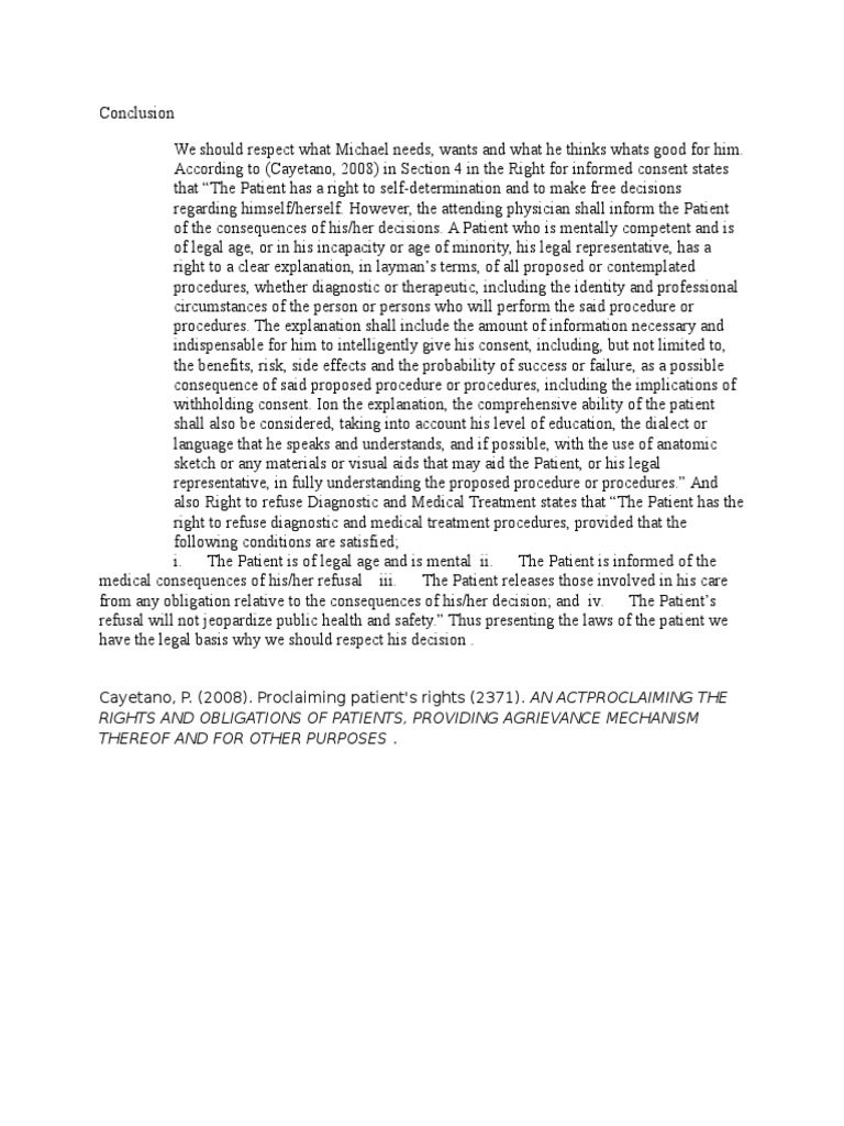 According to (Cayetano, 2008) in Section 4 in the Right for informed consent states