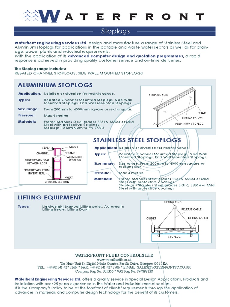 Aluminium stoplogs for applications in the potable and waste water sectors as well as for drainage, power plants and industrial requirements.