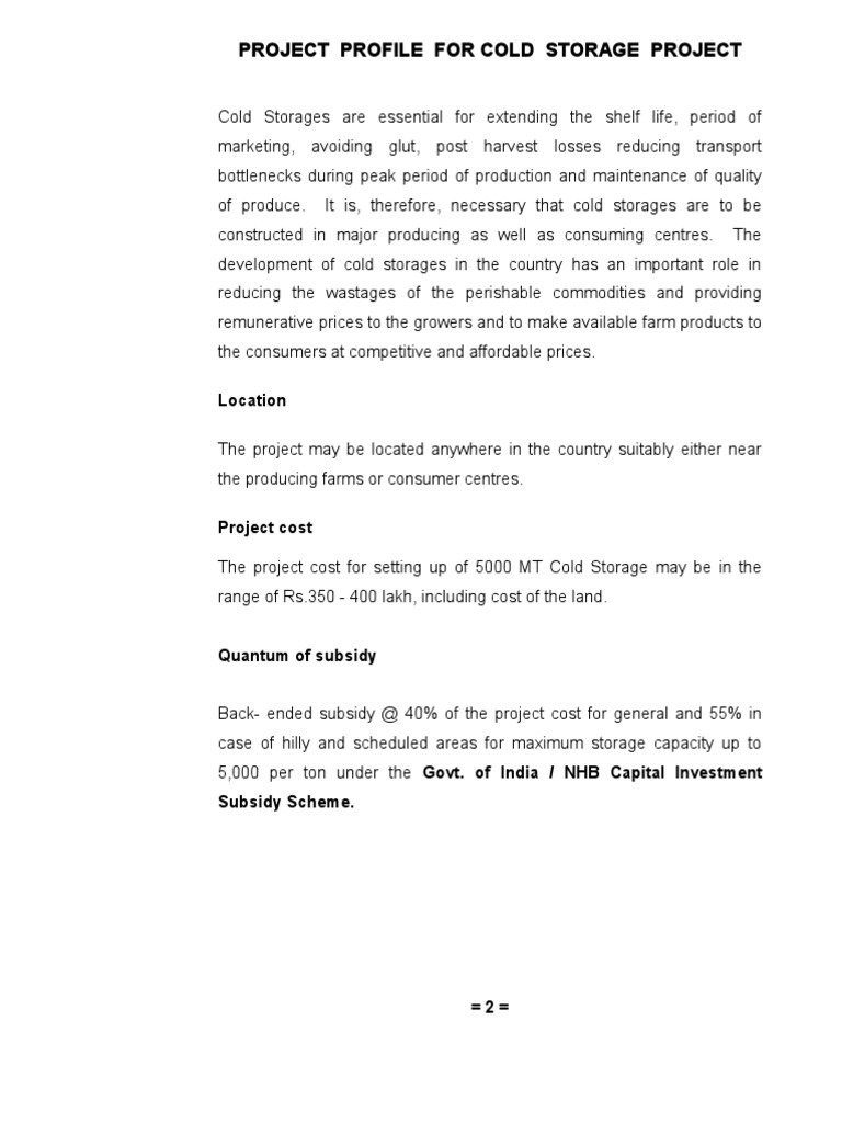 PROJECT PROFILE FOR COLD STORAGE PROJECT
