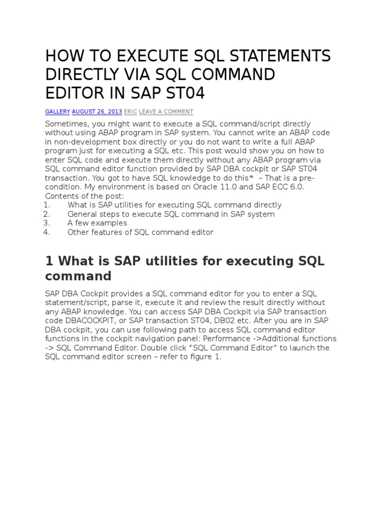 SAP DBA Cockpit provides a SQL command editor for you to enter a SQL
