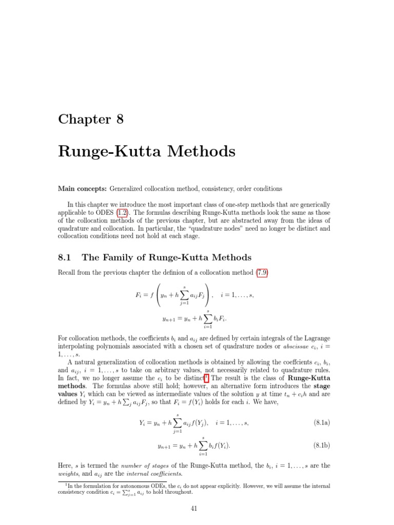 In fact, we no longer assume the ci to be distinct1 The result is the class of Runge-Kutta