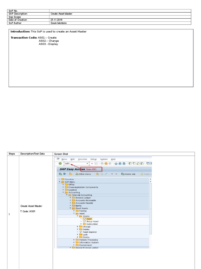 Introduction: This SoP is used to create an Asset Master