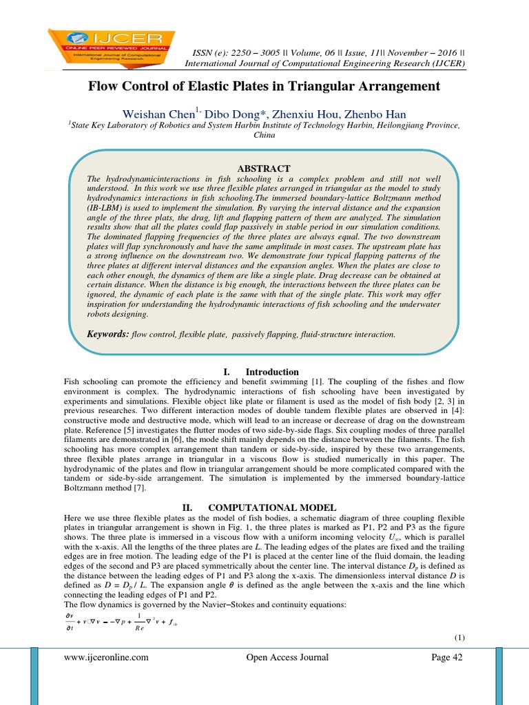 experiments and simulations. Flexible object like plate or filament is used as the model of fish body [2, 3] in