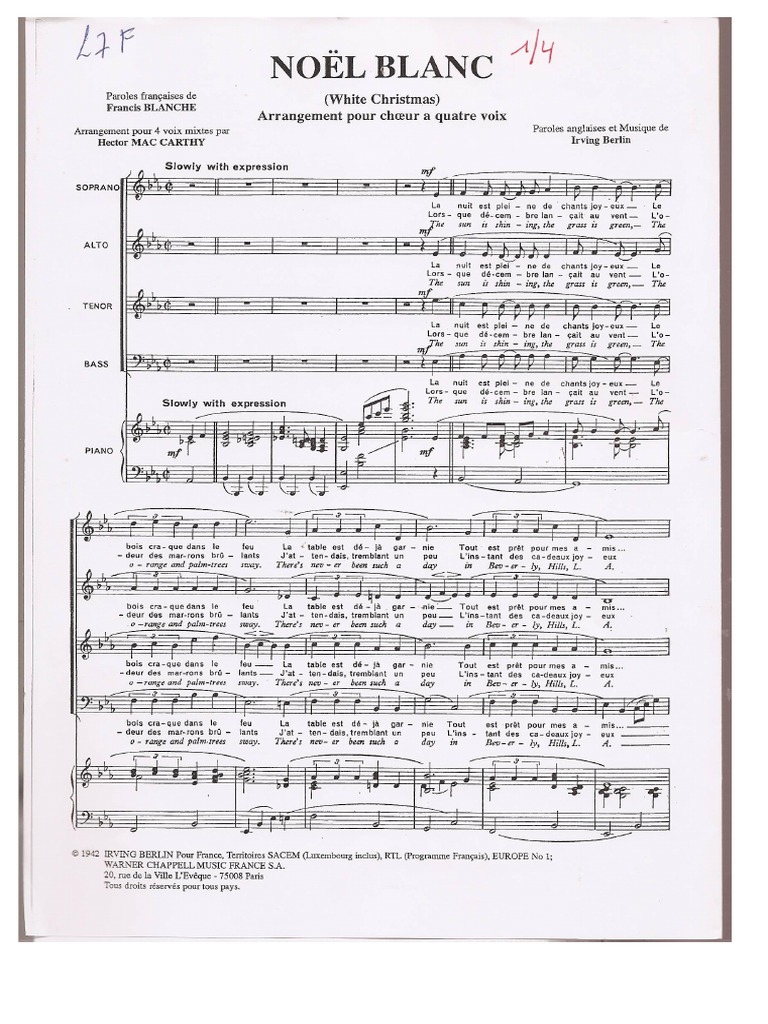 Arangomeat pour 4 voix mints pa Paroles angles et Musique de