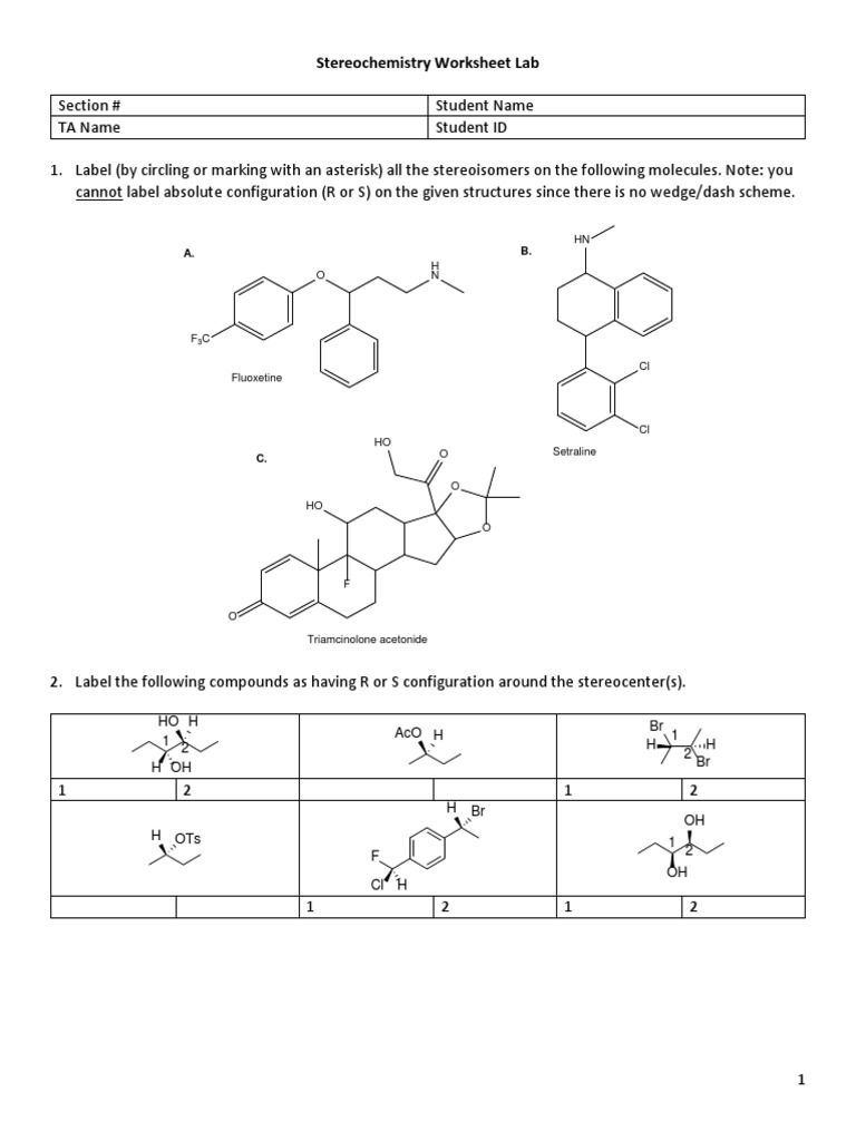 Stereochemistry Worksheet Lab