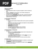 Teamwork requires cooperation, leadership, respect, and working toward a common goal, while selfishness, bullying, negative attitudes, and distractions can prevent effective teamwork.