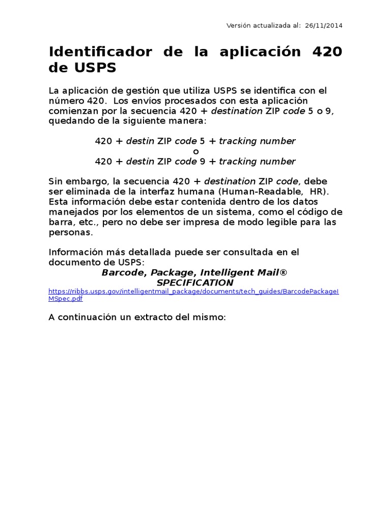 in the DMM. The Postal Service requires the Application Identifier (420) and the ZIP Code