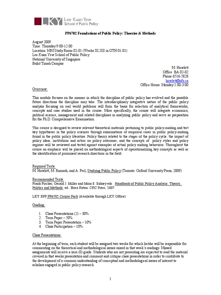This course is designed to review relevant theoretical materials pertaining to public policy-making and test