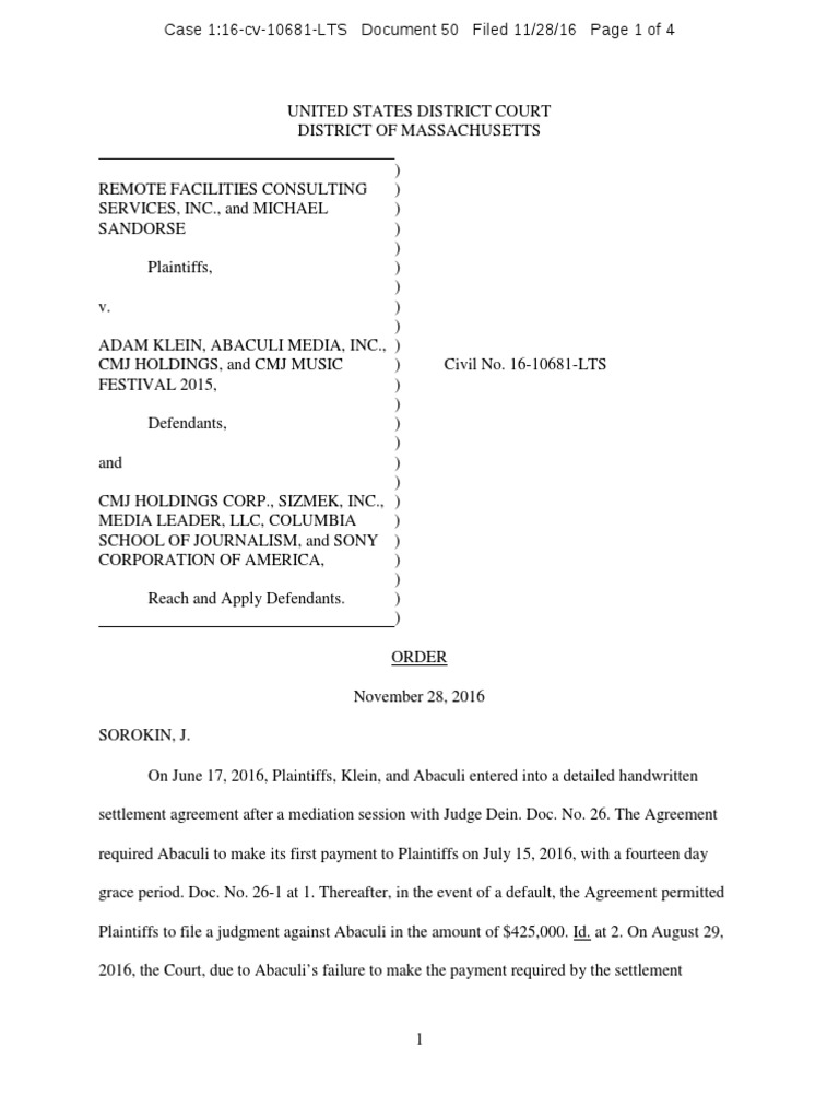 Remote Facilities Consulting Services v. Abaculi, Et Al. (11/28/2016)