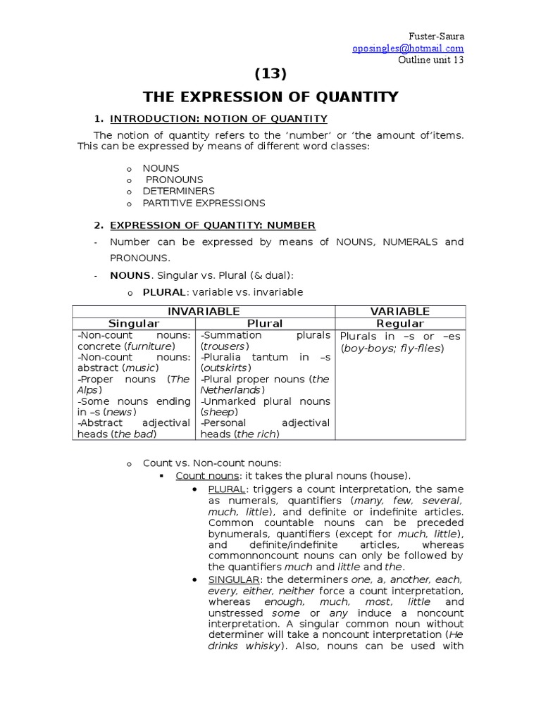 o Quantifying Pronouns (Quantifiers): cardinal numbers, much,