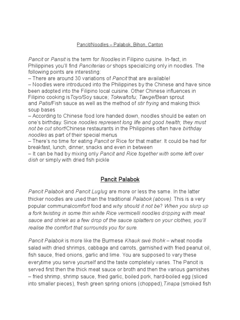 Pancit or Pansit is the term for Noodles in Filipino cuisine. In-fact, in