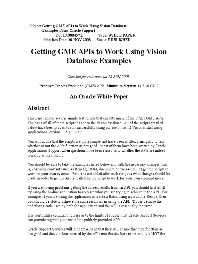 Users Guide Release 11i - Part No. A97388-04. When attempting to use an API, it is