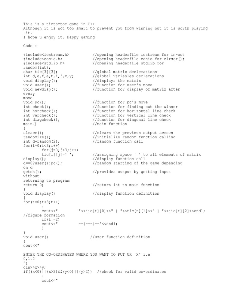 tic[f][z]='O'; //assigning pc 'O' to the co-ordinates