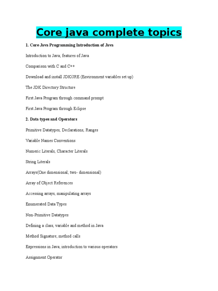 Core java complete topics