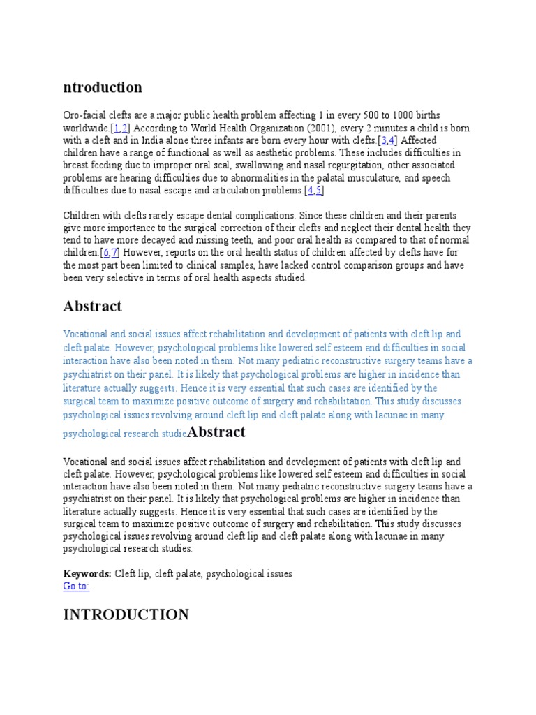 psychosocial problems as a result of cleft lip and palate. More research is required to develop a