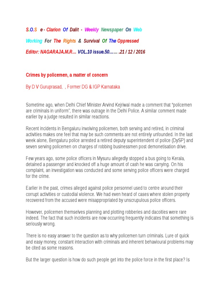 ensuring his unfettered rise. It is absurd that the Indian Police is still governed by a colonialera Act dating back to 1861. A number of commissions have made recommendations for