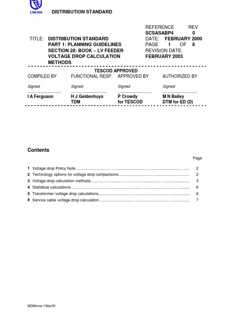 Eskom is adopting the Herman Beta method as the preferred method for all LV domestic voltage drop