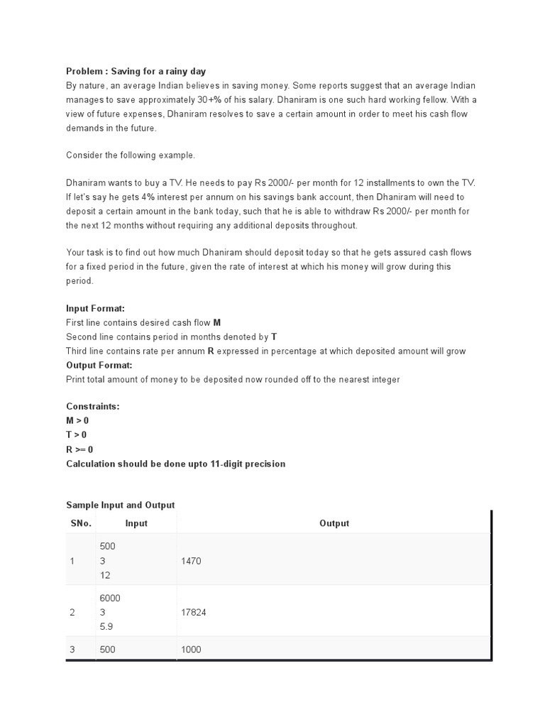 Problem : Saving for a rainy day