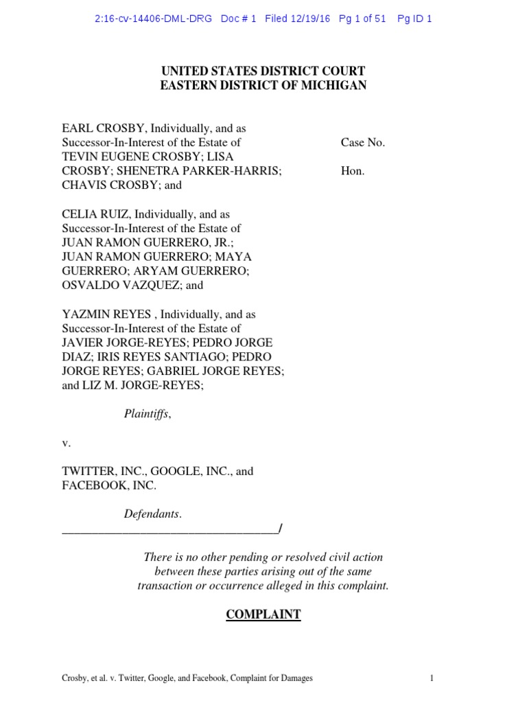following against Defendants Twitter, Inc., Google, Inc., Facebook, Inc.