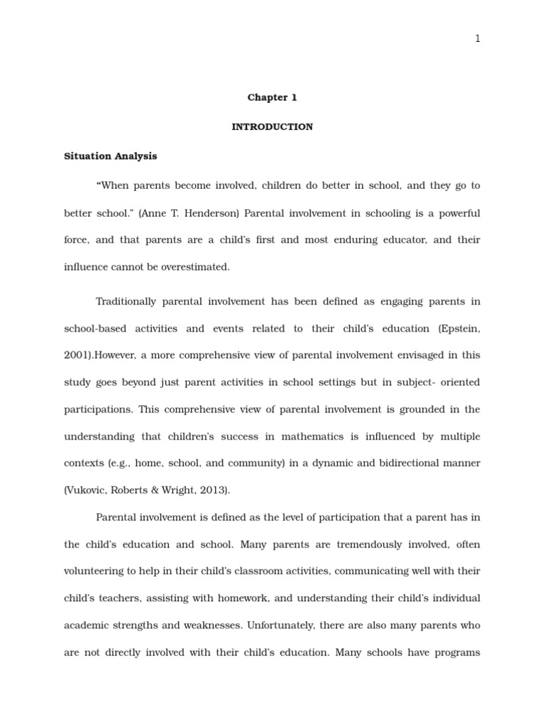 2001).However, a more comprehensive view of parental involvement envisaged in this