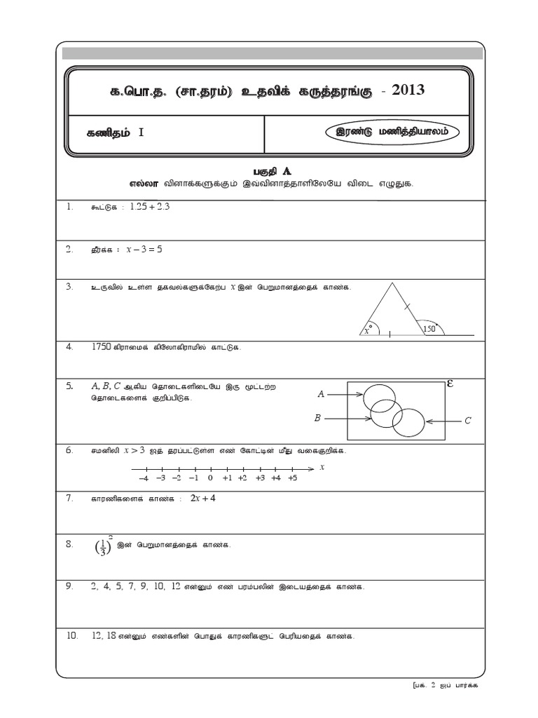 10. (a) tl;lf; FWf;Fntl;bd; Miu 2a MfTk; ePsk; l MfTk; cs;s xU rPuhd cUis cNyhff;