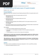 revenues for the quarter ended June 30, 2012 stood at `9,616 crore, with a YoY growth of 28.5%.