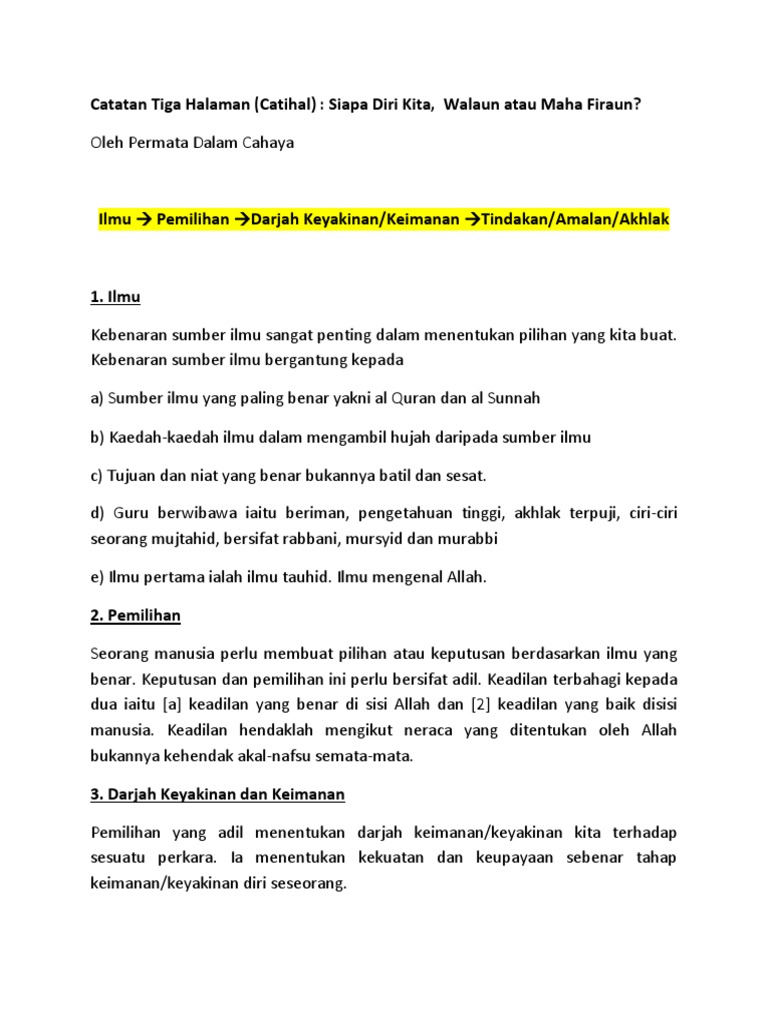 Catatan Tiga Halaman (Catihal) : Siapa Diri Kita, Walaun atau Maha Firaun?