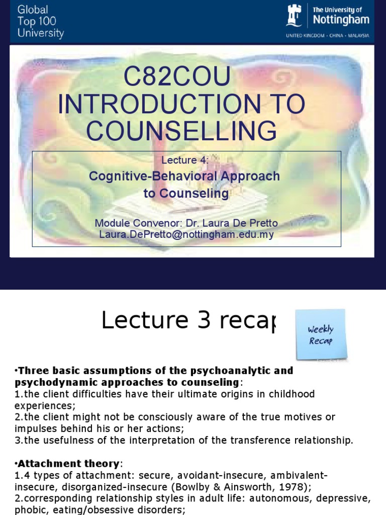 2. Main areas of focus of the cognitivebehavioural approach to counselling
