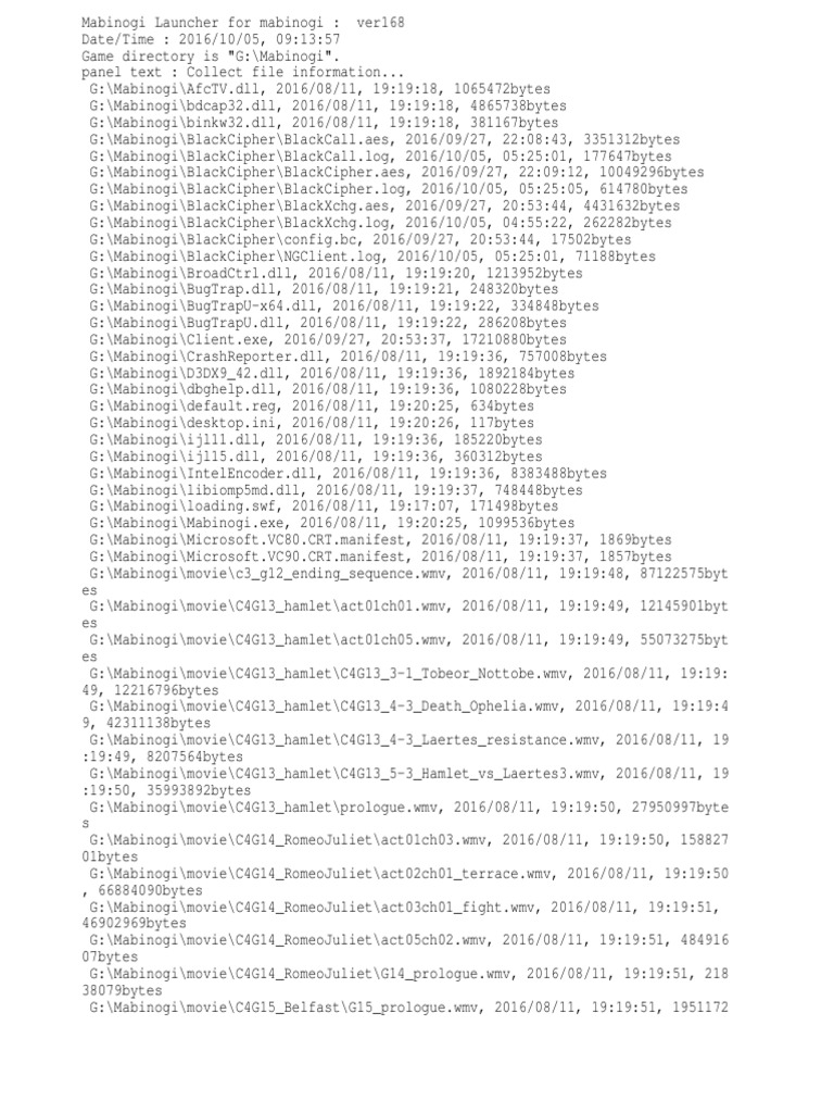 G:\Mabinogi\Mabinogi.exe, 2016/08/11, 19:20:25, 1099536bytes