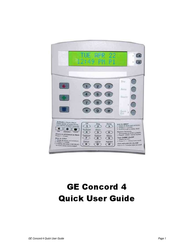 GE Concord 4 Quick User Guide