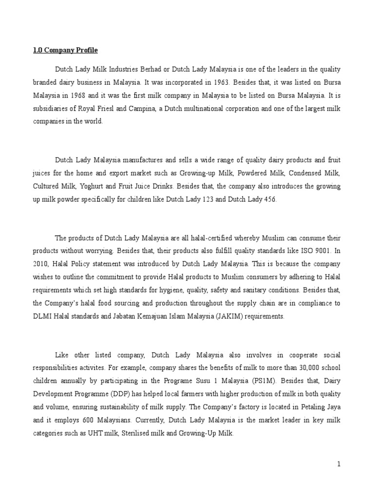 branded dairy business in Malaysia. It was incorporated in 1963. Besides that, it was listed on Bursa
