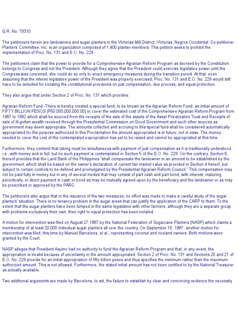 planters' situation. There is no tenancy problem in the sugar areas that can justify the application of the CARP to them. To the