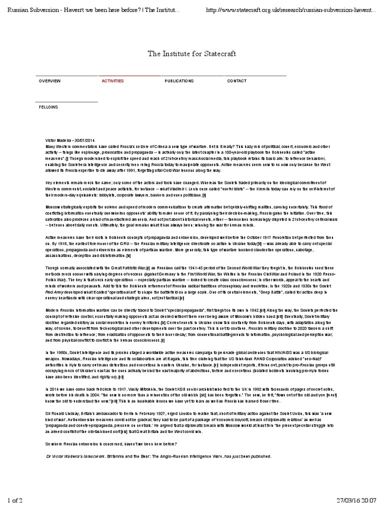 Madeira - Russian Subversion - Haven't We Been Here Before? - The Institute For Statecraft
