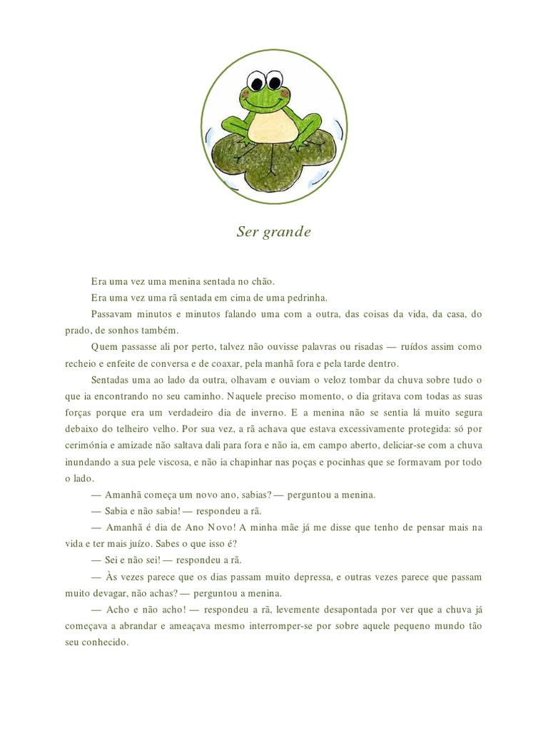 E de novo se sentaram, agora um pouco mais cansadas: a menina, no cho; a r, em cima
