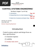 Thusfor a linear systemwith a ramp input of slope 1, the steadystate error will be