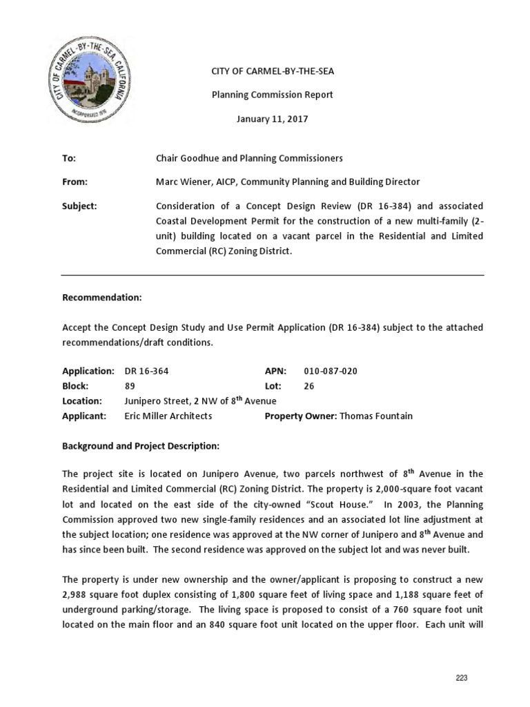 preliminary concepts to the Planning Commission for feedback prior to final approval. The purpose