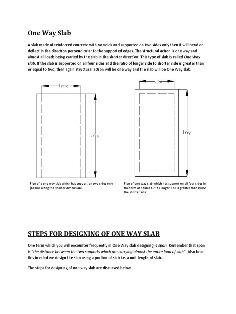 almost all loads being carried by the slab in the shorter direction. This type of slab is called One Way