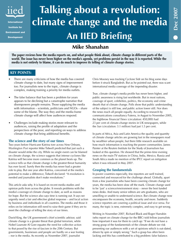too. For journalists new to the topic, climate change is international media coverage of the impending disaster.