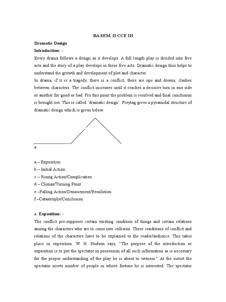 is brought out. This is called dramatic design. Freytag gives a pyramidal structure of