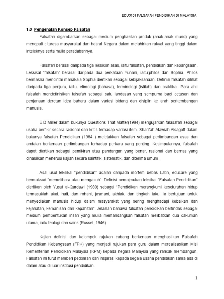 berpandukan daripada falsafah Barat, Timur dan Islam. Implikasi daripada falsafah tersebut