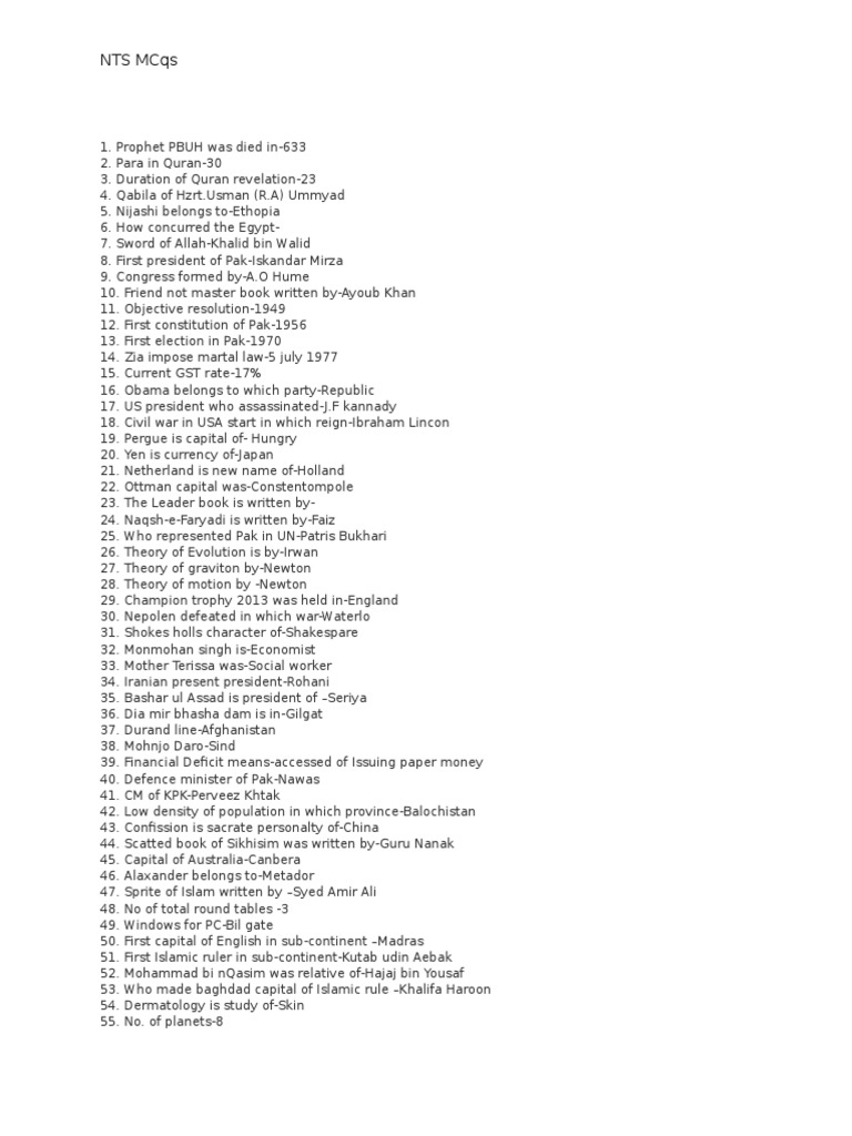 Nts Mcqs