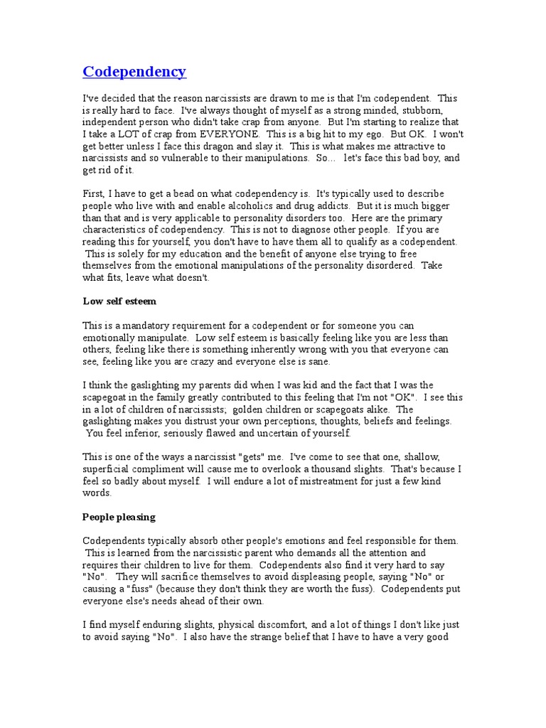 thoughts, opinions, wants, needs or feelings. Since codependents spend an inordinate