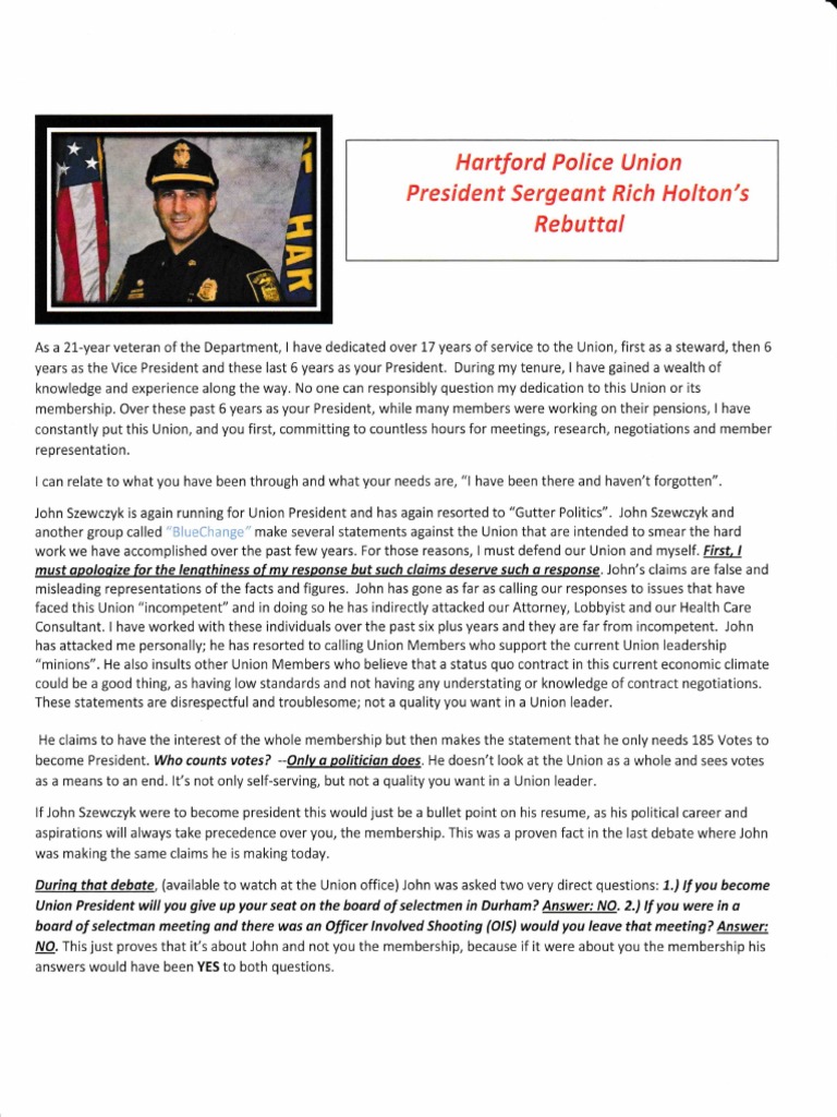 HPD Union President Holton message to membership